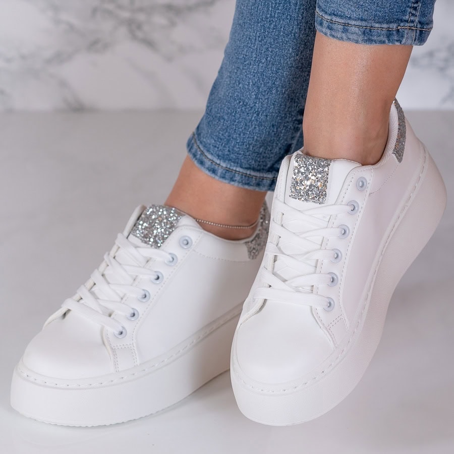 Adidași eleganți din piele ecologică albă Becka pentru femei