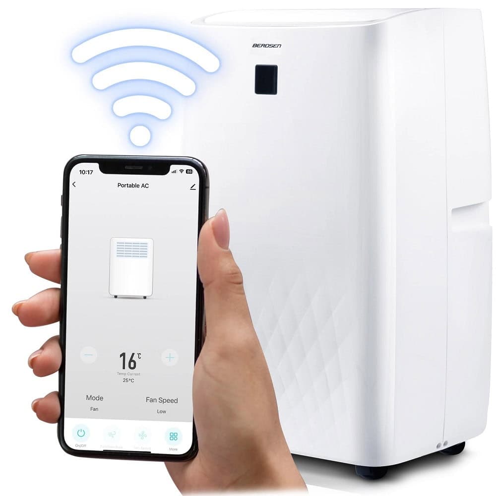 Aer conditionat portabil, 5 in1, raceste, incalzeste, dezumidifica, aeriseste si modul noapte, afisaj LCD si panou de control tactil, aplicatia Tuya, Wi-Fi, functia de pornire automata, 4000 W