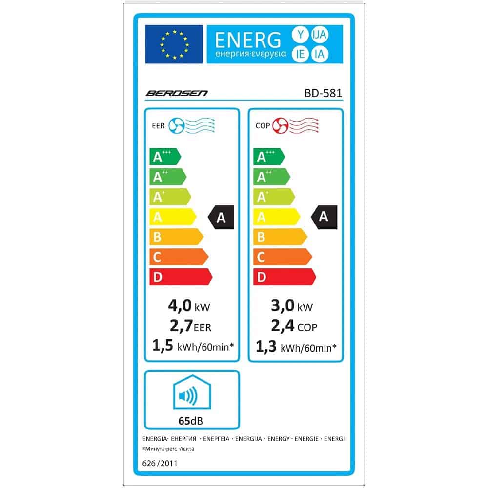 Aparatul de aer conditionat BD-581 este un aparat compact, profesional si functional care functioneaza cu o eficienta maxima de 36.000 ml/zi . Functioneaza linistit si eficient . Datorita clasei energetice ridicate, iti vei raci camera si vei economisi consumul de energie.