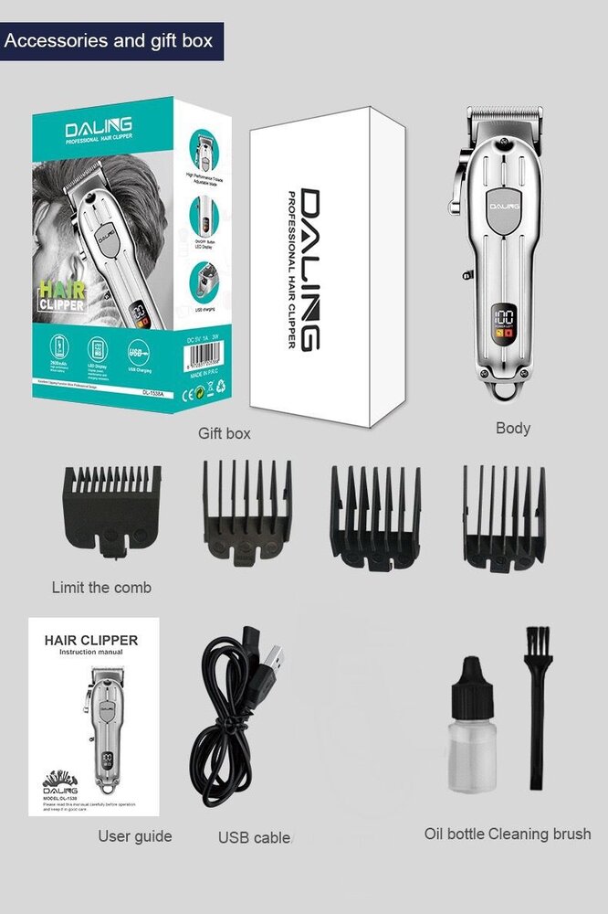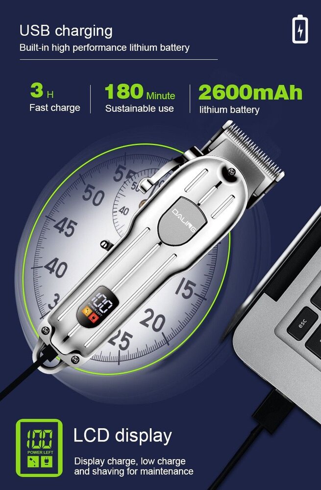 Aparat de tuns LCD cu afisaj digital, reincarcablil : Culoare - argintiu
