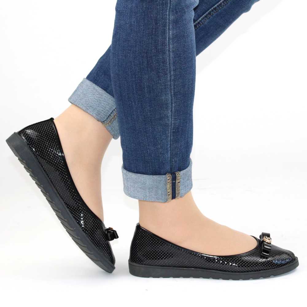 Balerini de dama perforati, usori si comozi cu fundita F-18-BLACK