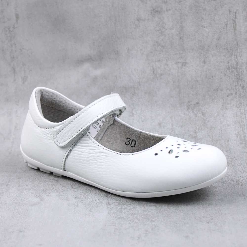 Descoperă eleganța și confortul oferite de balerinii din piele naturală 1862-ALB și asigură-ți că micuța ta strălucește în orice context!