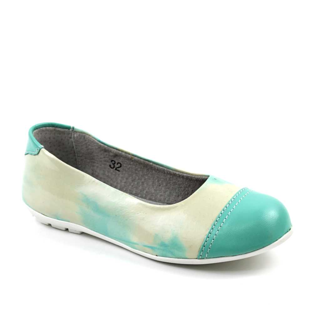 Balerini usori , din piele naturala lacuita , pentru copii 3221-TURCOAZ/ALB/1