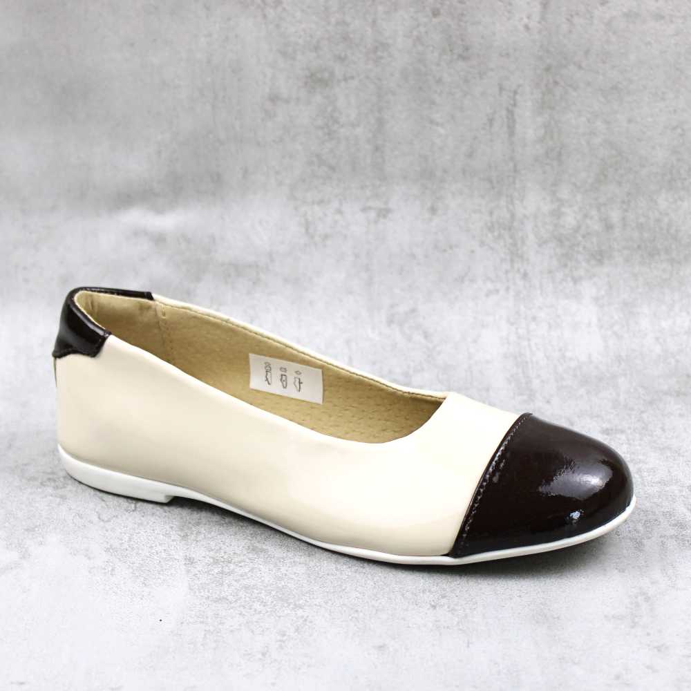 Balerini usori , din piele naturala si lac sintetic , pentru copii 3221-BEJ/MARO