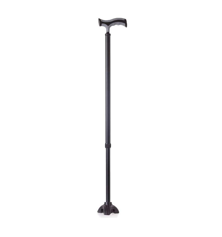 - Baston din aluminiu reglabil, prevăzut cu mâner în formă de T și pufar antialunecare din cauciuc în formă de stea.