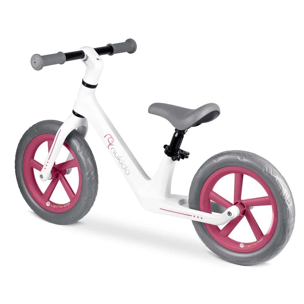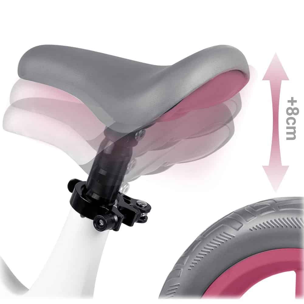 Bicicleta de echilibru pentru copii, cadru durabil, sa din spuma, manere cauciucate, inaltimea scaunului reglabila, roti de spuma EVA, 12 inchi, alb si roz