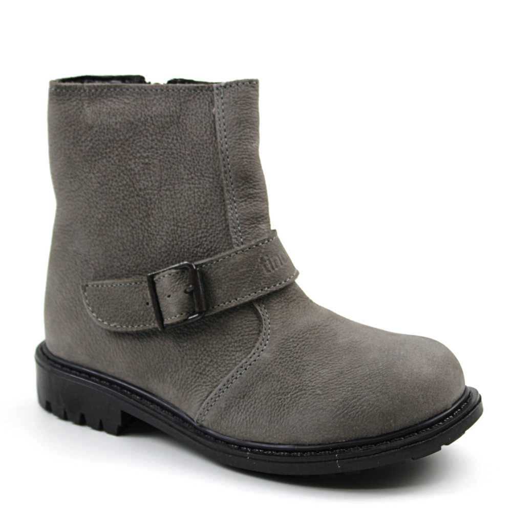 Bocanci captusiti pentru copii , din piele naturala 2752-GRI.INCHIS/X