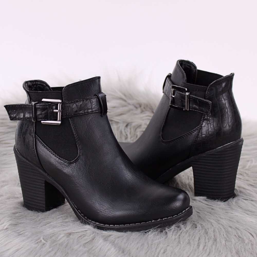 Descoperă acum eleganța și confortul oferite de botinele de dama cu elastic lateral și bareta reglabilă 52075A-BLACK și adaugă o notă distinctivă garderobei tale!