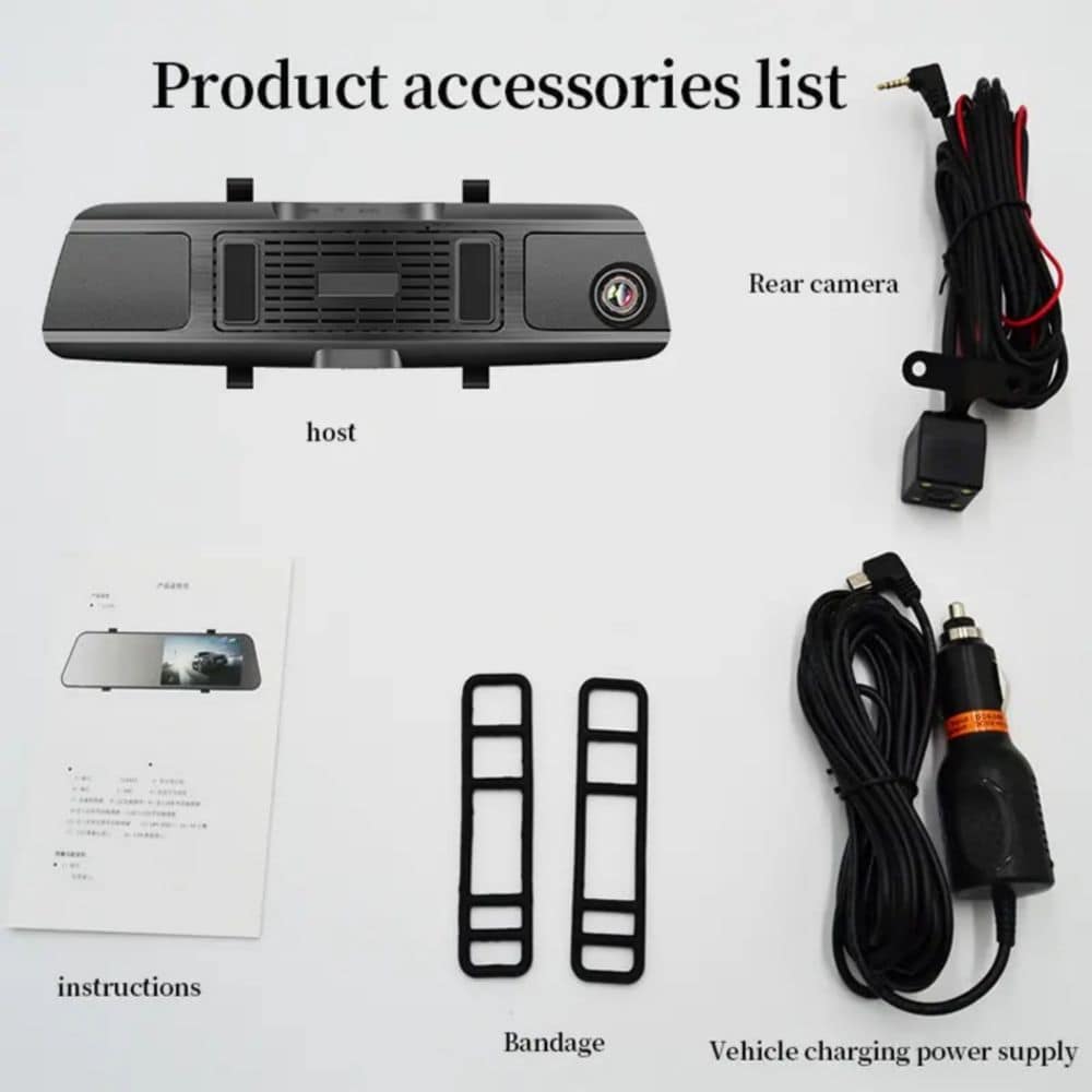 Continut pachet : 1 x Adaptor alimentare retea, 1 x Cablaj conectare, 1 X Oglinda retrovizoare cu camera auto, 1 x Instructiuni de utilizare, 1 x Cutie