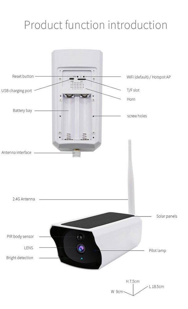 Funcții suplimentare: alarma, viziune de noapte, funcție de înregistrare, instantaneu, senzor de miscare, suport WIFI