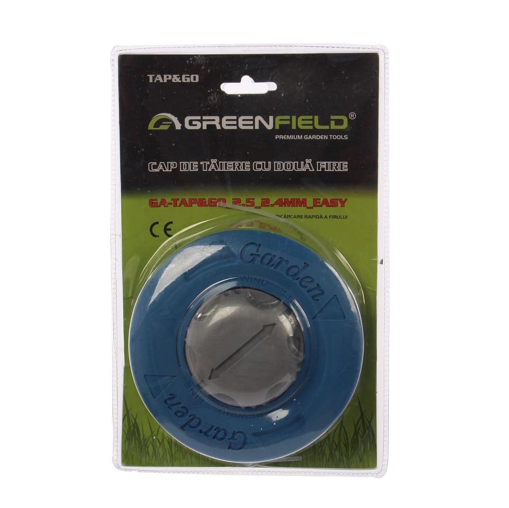 Cap cu fir pentru motocoase Greenfield, din nylon, 2 fire, functia Tap and Go, profil rotund, diametru 2.4 mm, 2.5 m