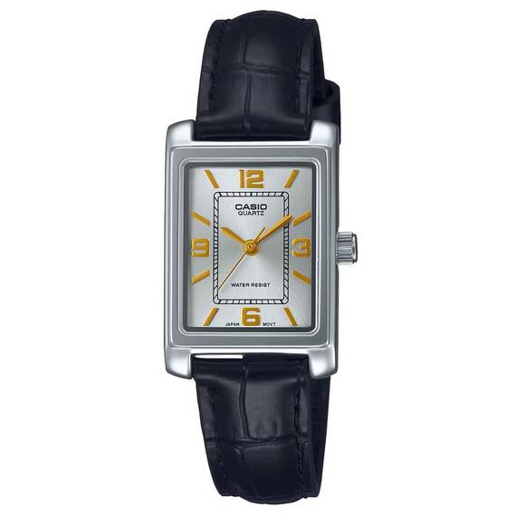 Cu Ceasul de dama Casio Collection LTP-1234PL-7A2EF vei aduce o nota de eleganta si rafinament oricarei tinute. Designul sau minimalist, cu un cadran analog si o curea din piele neagra de inalta calitate, te va face sa te simti speciala in fiecare moment al zilei.