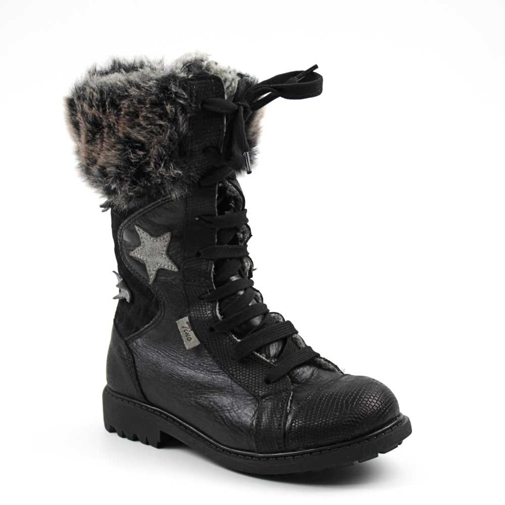 Cizme imblanite , pentru copii , din piele naturala, cu bordura de blana 3192-STAR/NEGRU/10
