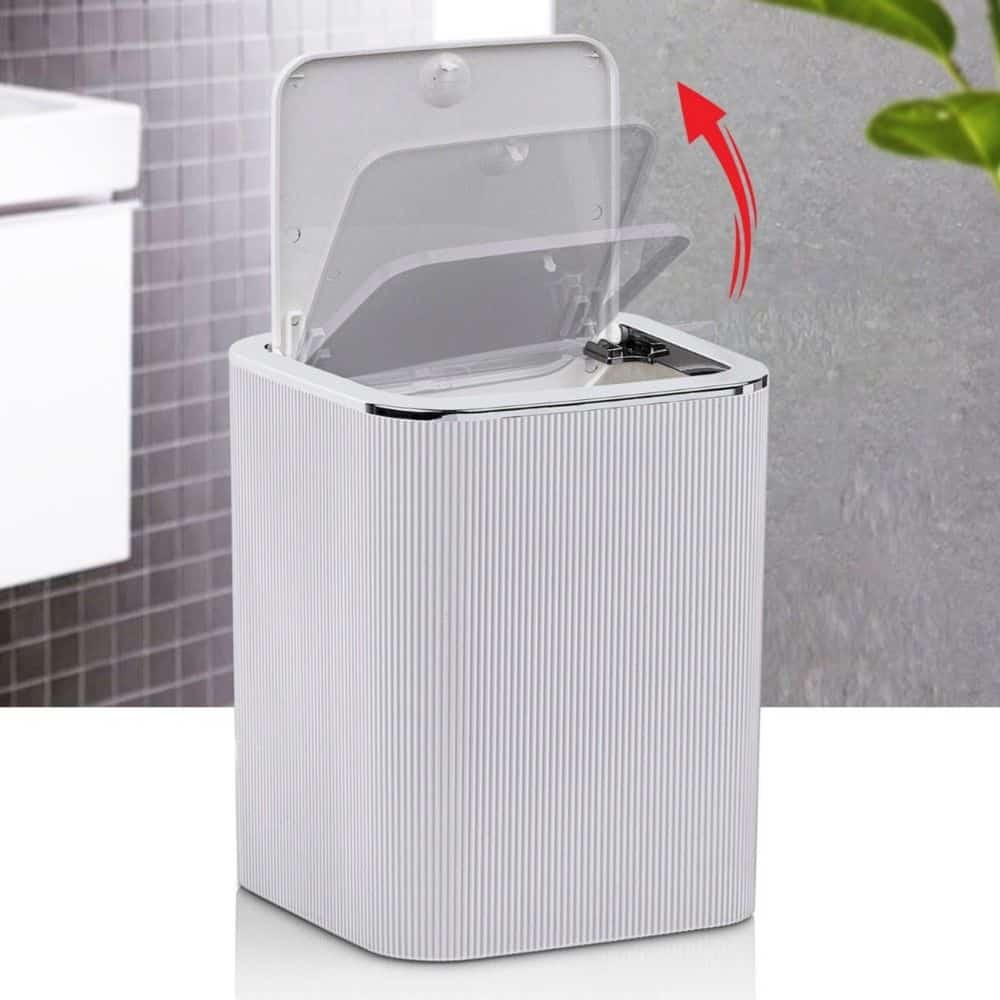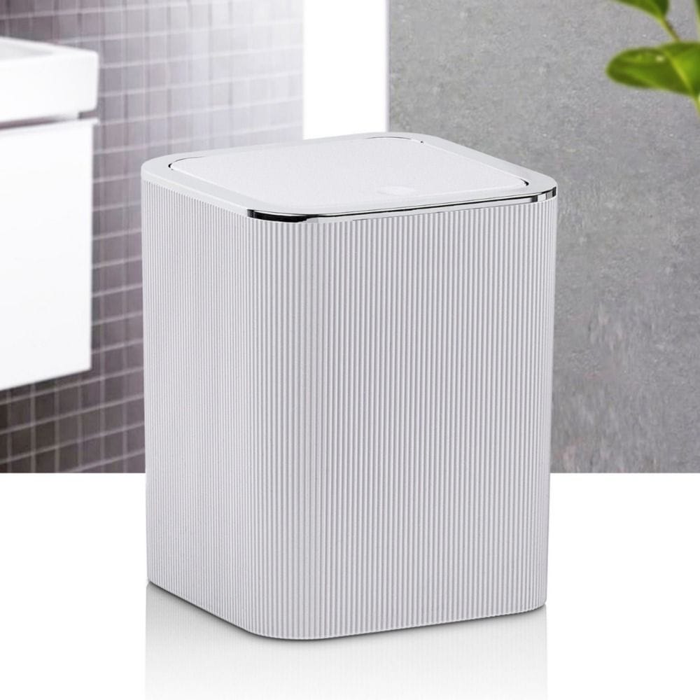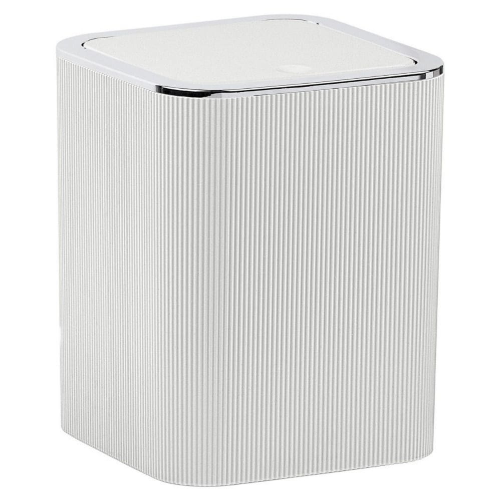 Cos de gunoi, realizat din plastic, forma dreptunghiulara, design modern si elegant, 5 L, 18 x 18 x 22.5 cm, culoarea alb si cromat