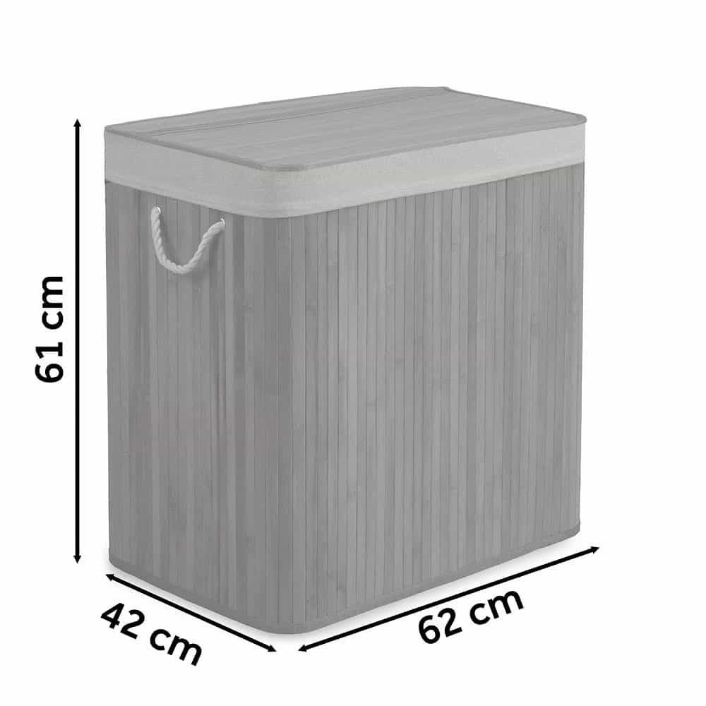 Cos de rufe DacEnergy©, din bambus si bumbac natural, constructie respirabila, manere functionale, cu capac, 3 compartimente, 150 l, 61 x 62 x 42 cm, gri