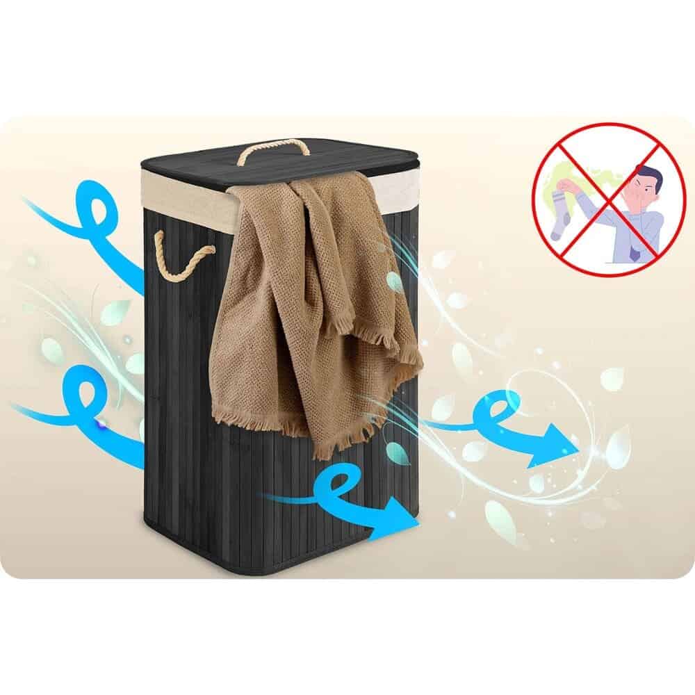 Cos de rufe DacEnergy©, din bambus si bumbac natural, constructie respirabila, manere functionale, cu capac, 72 l, 61 x 42 x 32 cm, negru