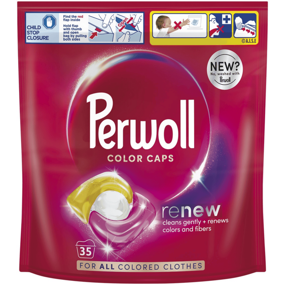 Perwoll Color Caps Renew este un detergent inovator sub forma de capsule, conceput special pentru haine colorate. Formula sa avansata curata delicat, dar eficient, mentinand intensitatea culorilor si protejand tesaturile la fiecare spalare. Cu tehnologia Renew, hainele capata un aspect revigorat si o textura mai fina, redusa in uzura.