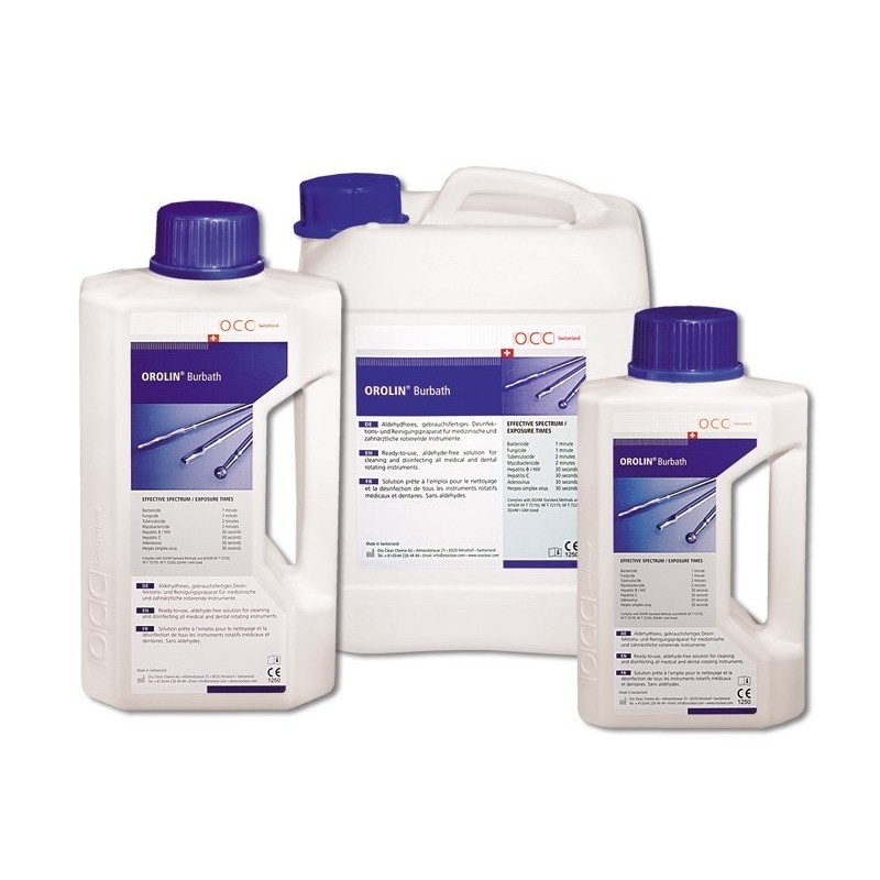 OROLIN Burbath este un produs gata preparat, fără aldehide, pentru dezinfecţia şi curăţarea tuturor instrumentelor rotative chirurgicale şi dentare.