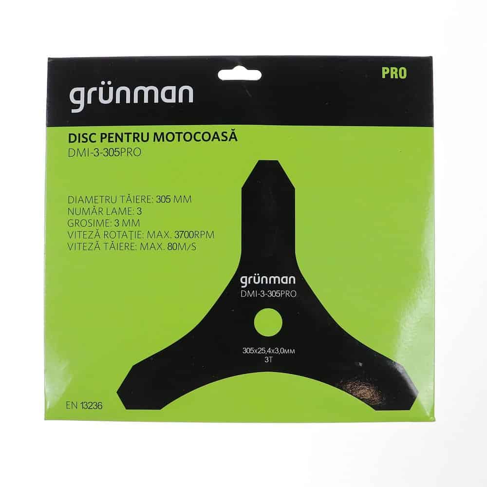 Cutitul pentru tuns iarba Grunman este confectionat din otel, cu 3 lame de taiere, are diametrul de 30.5 centimetri si grosimea de 3 milimetri.