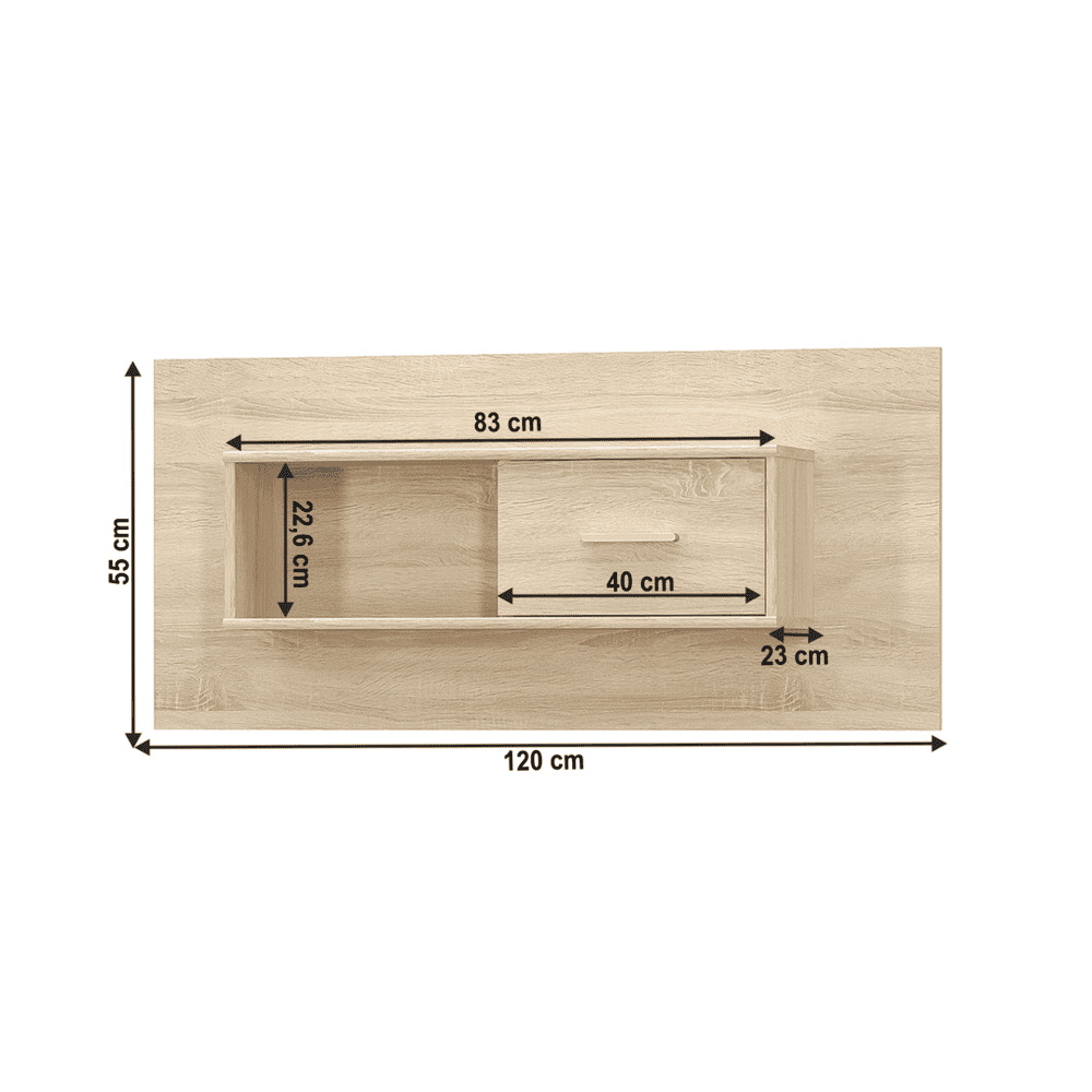 Dulap suspendabil 1D TEYO Material: DTD laminat Culoare: stejar sonoma Dimensiuni (LxGxÎ): 120x23x55 cm Grosimea materialului: 16 mm Livrat nemontat.