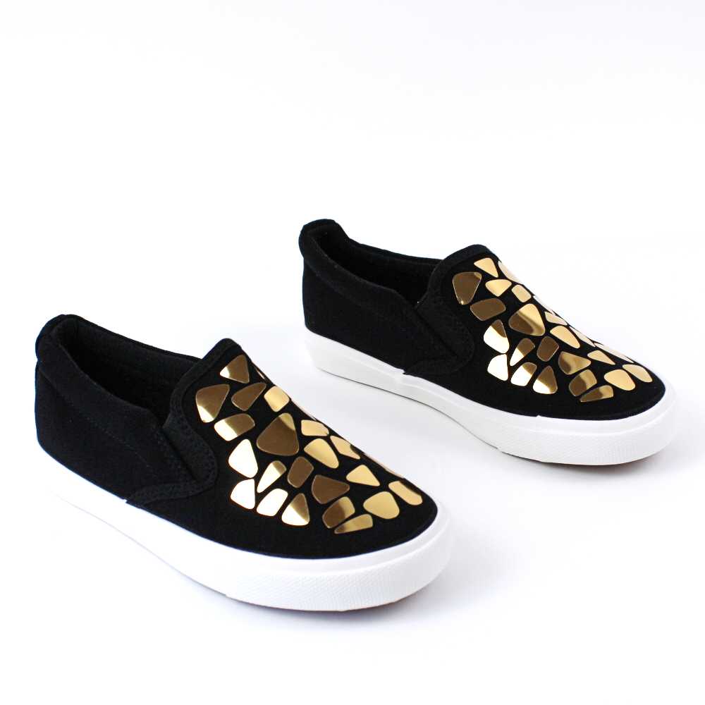 Espadrile de copii accesorizate, comode și ușoare D001-1-BLACK/GOLD
