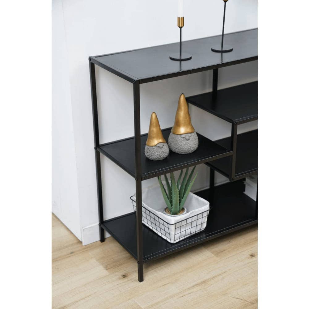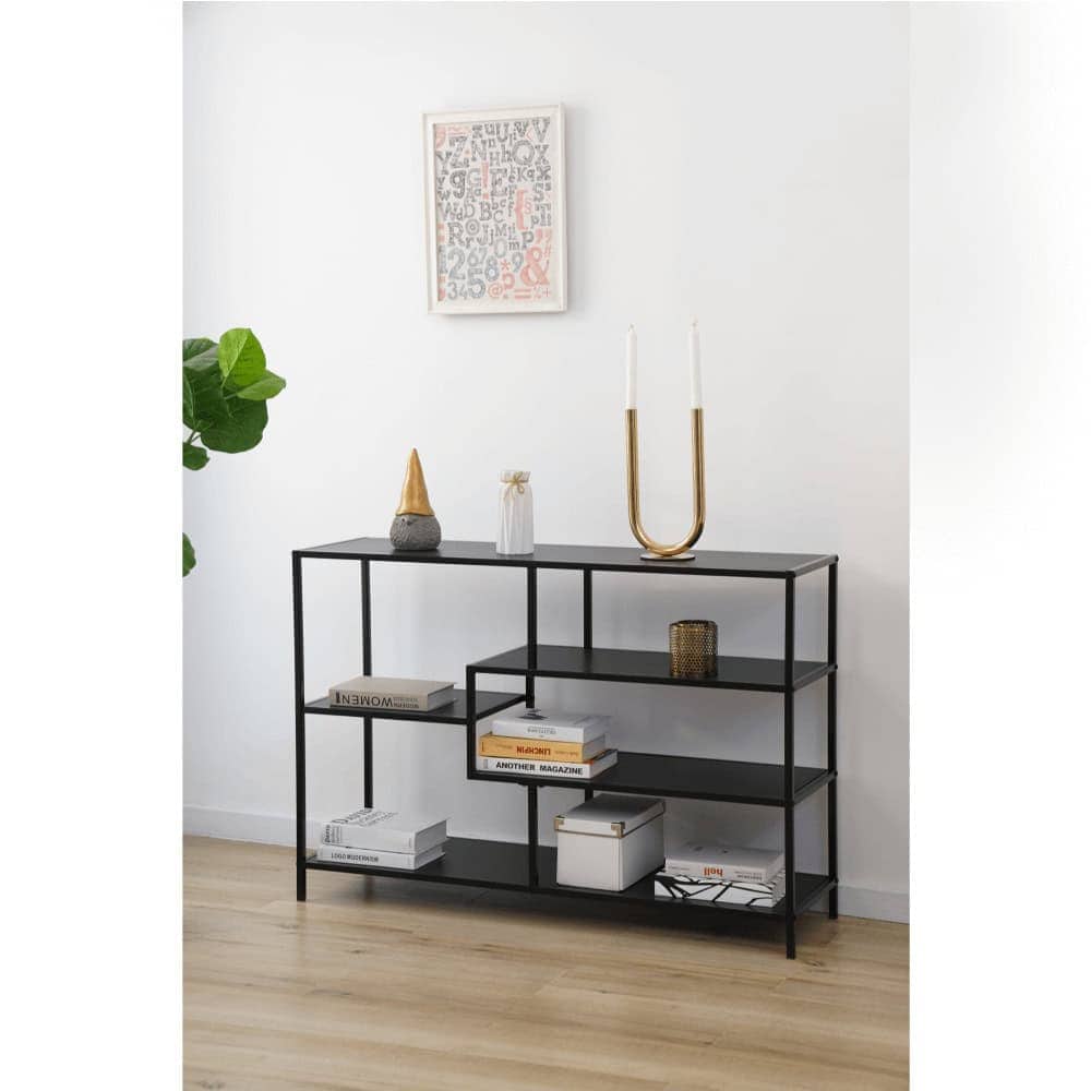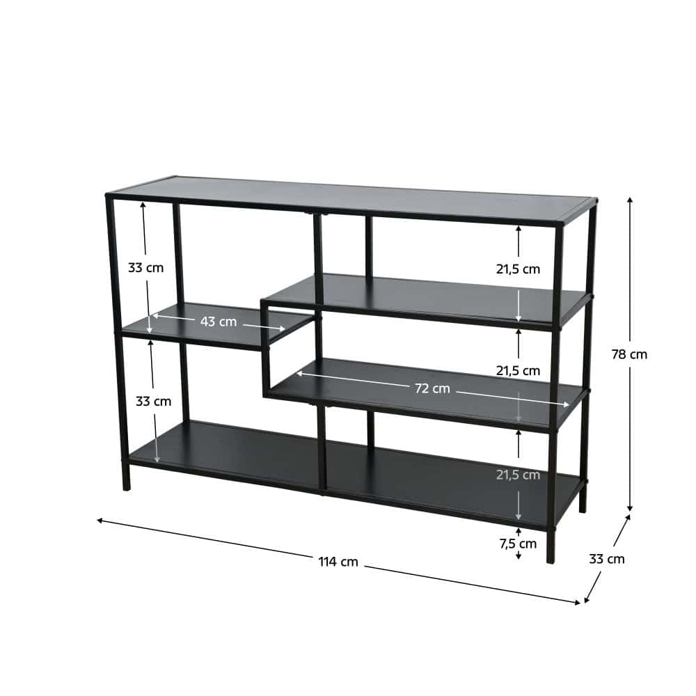 Etajera DacEnergy©, structura metalica, aspect elegant, 5 zone de depozitare, 114 x 33 x 78 cm, capacitate de incarcare pe fiecare raft 7 kg, culoare neagra