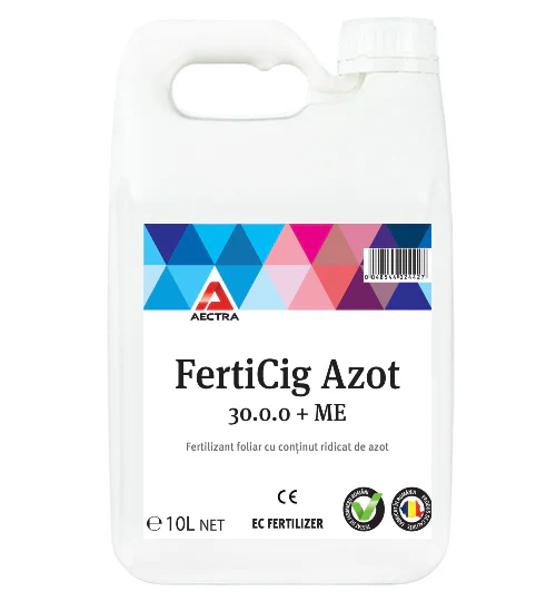 FertiCIG Azot, îngrăşământ foliar cu un conținut ridicat de azot total (30%) și conține toate cele trei forme de azot necesar plantelor ( azot ureic, azot amoniacal și azot nitric) care se poate aplica la majoritatea culturilor agricole şi horticole la care se doreşte optimizarea regimului de nutriţie, îndeosebi atunci când există premisele sau se observă simptome de carenţă de azot în culturi.