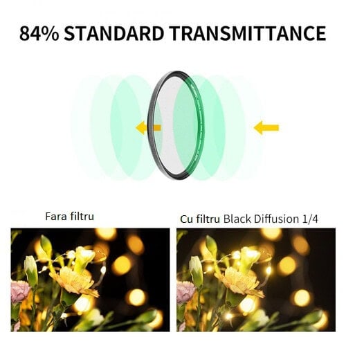 Filtrul Black Mist 1/4 are o rata de transmisie de 84 la suta fara un impact negativ asupra calitatii imaginii.