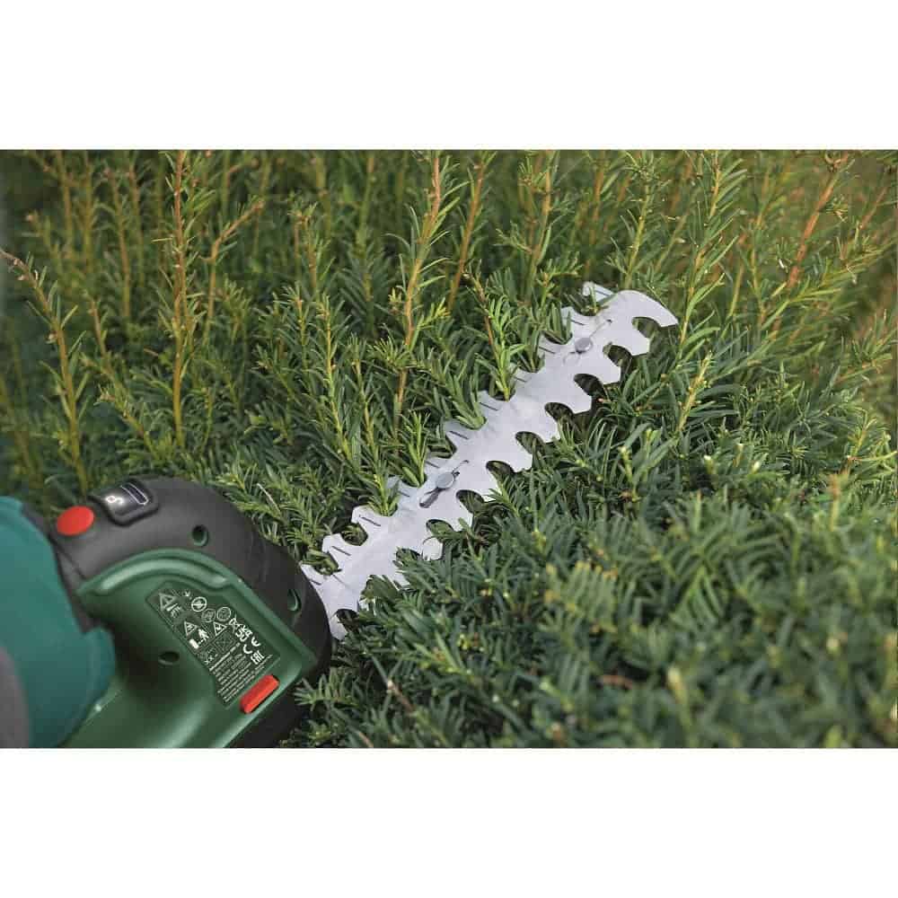 ideal pentru modelarea si tunderea gardului viu tanar, arbustilor sau ierbii, in medie pana la 85 mp per incarcare a acumulatorului;