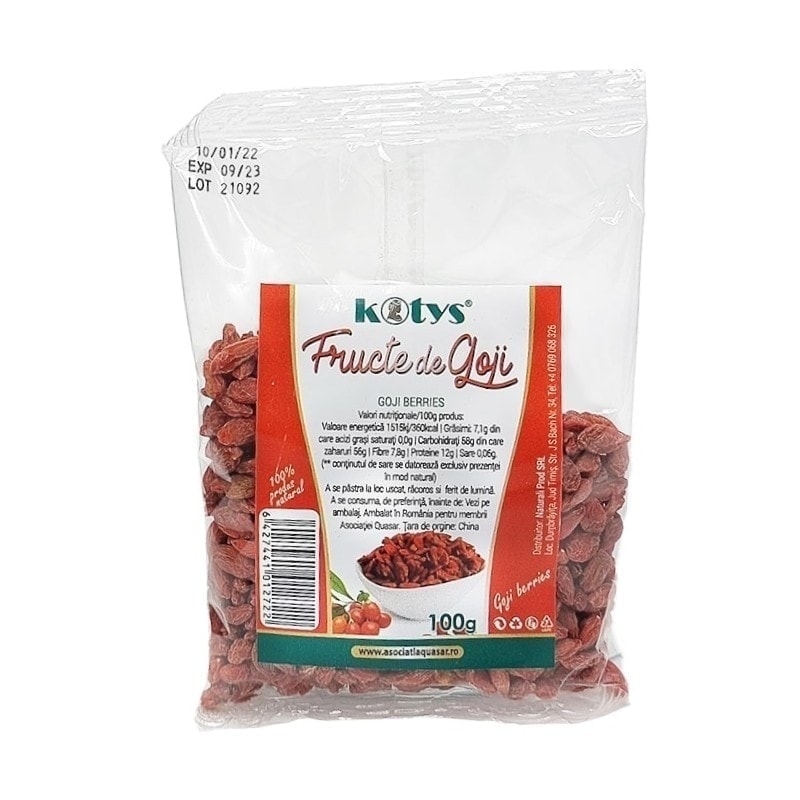 Fructele de goji cresc pe un arbust peren din familia Solanaceae (catina de garduri) ce se gaseste in regiunile temperate si subtropicale ale Chinei si Mongoliei, in Himalaya si Tibet. Sunt fructe de padure foarte bogate in antioxidanti, in special carotenoide (beta-caroten, zeaxantina), cu gust usor picant, dulce-acrisor, comercializate de obicei sub forma uscata si folosite traditional in China, Tibet si India de 6000 de ani pentru protejarea ficatului, imbunatatirea vederii, stimularea functiei sexuale si a fertilitatii, pentru intarirea picioarelor, imbunatatirea functionarii sistemului imunitar, promovarea circulatiei sanguine si cresterea longevitatii.