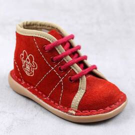 - Ghete usoare , pentru copii , din piele naturala intoarsa , PRIMII PASI 3059-ROSU