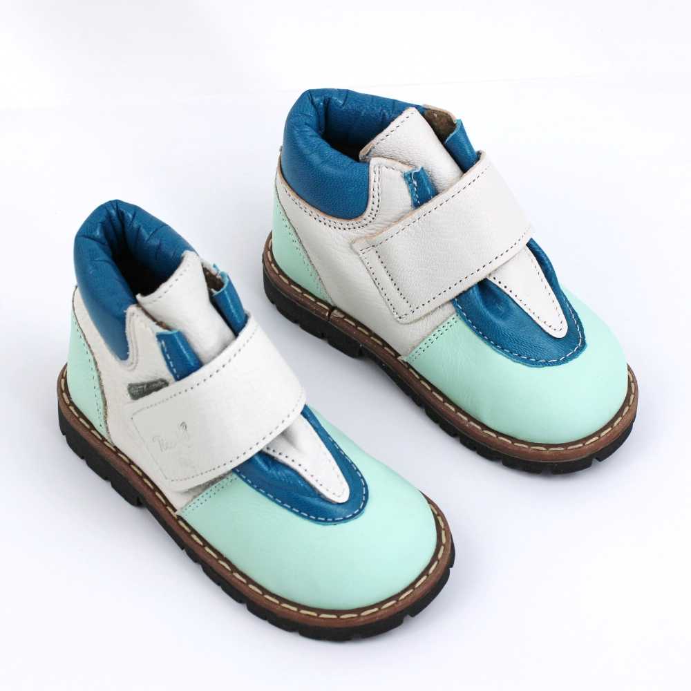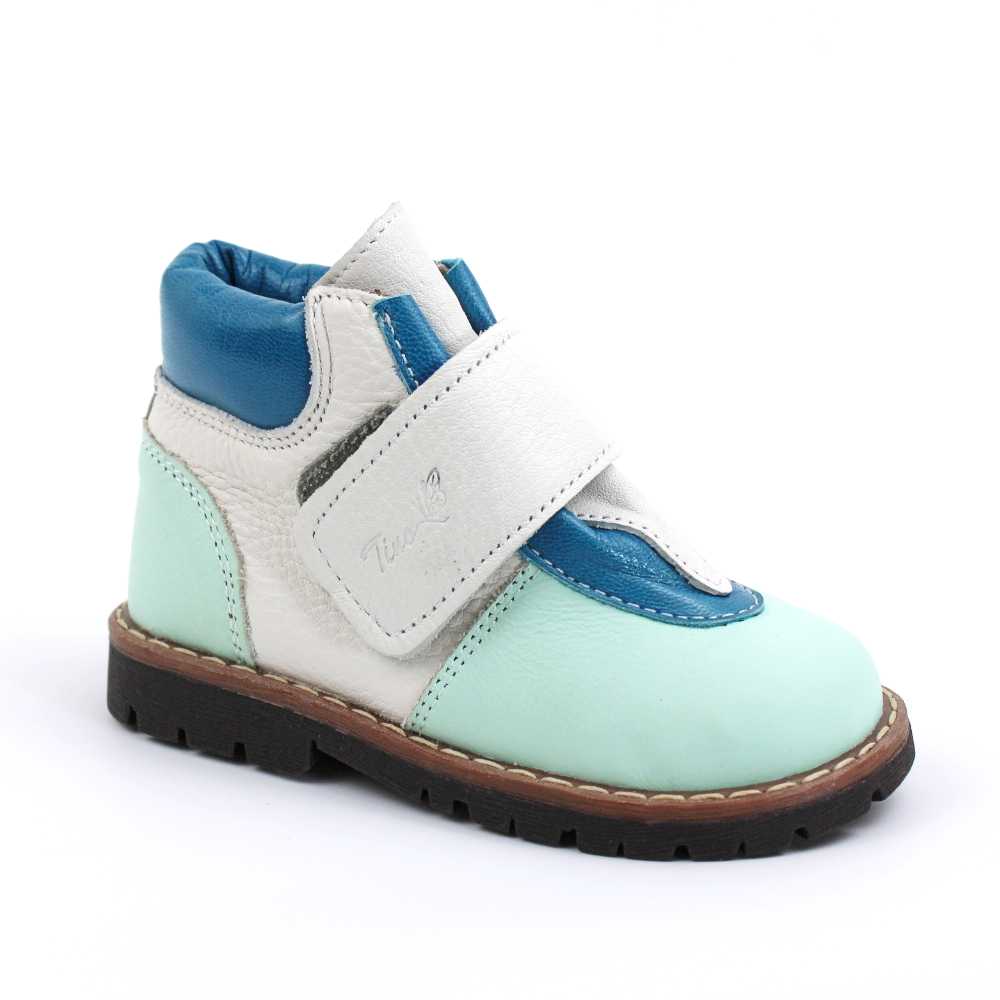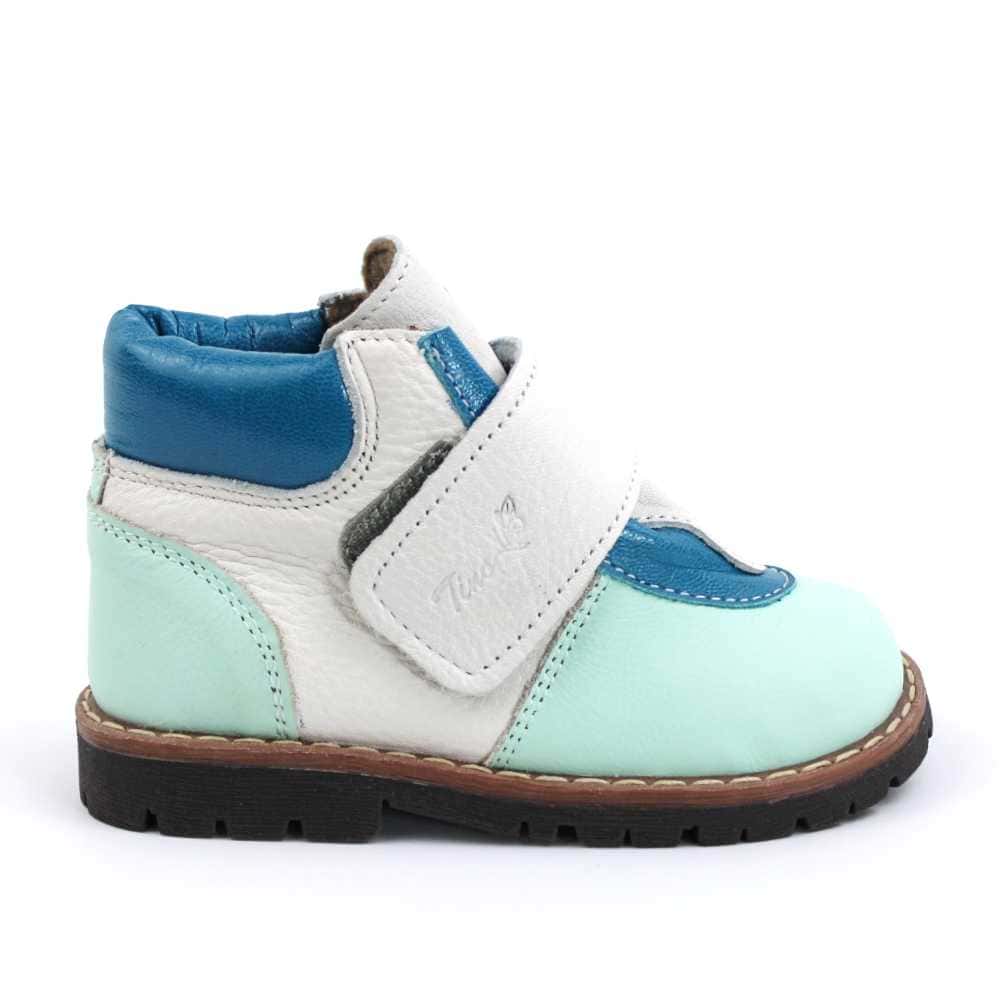 Ghete de copii, captusite , din piele naturala PRIMII PASI 2995-TURCOAZ/ALB