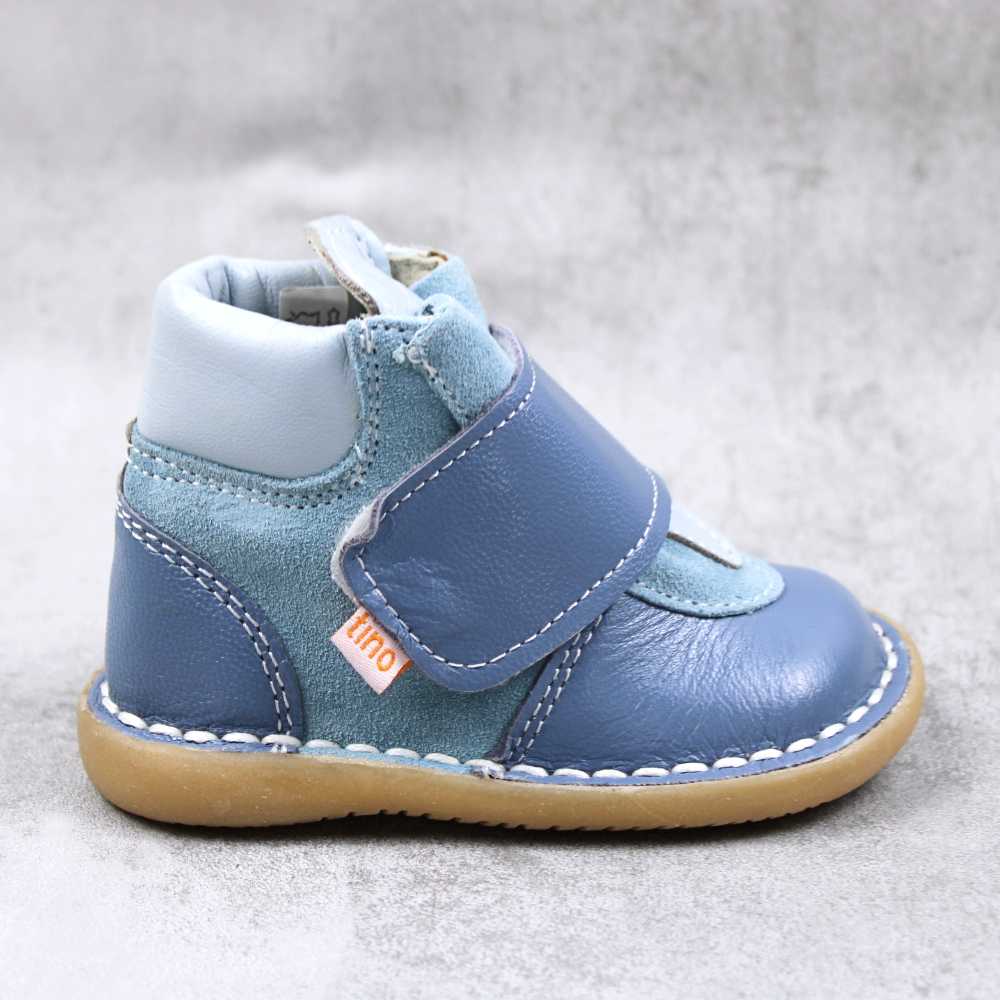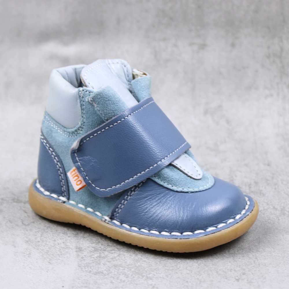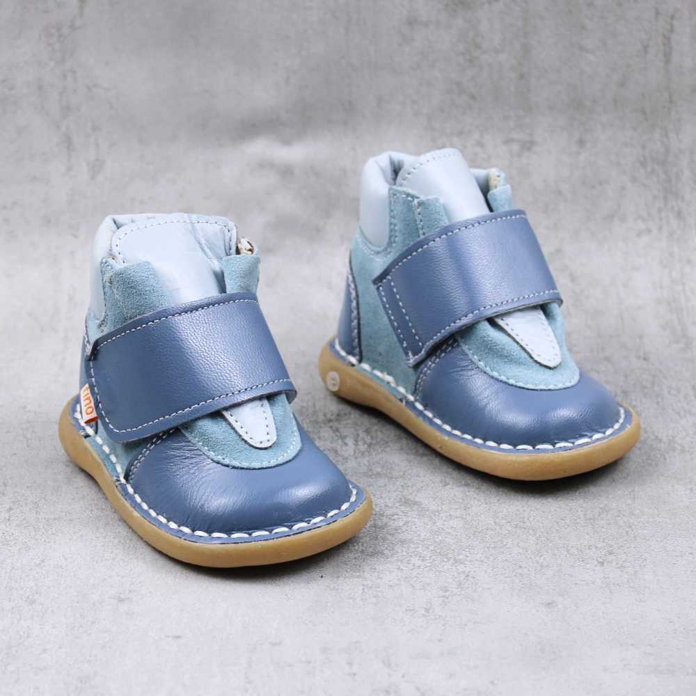 Ghete de copii, cu talpa cusuta , din piele naturala PRIMII PASI 3022-GRI/BLEU/1