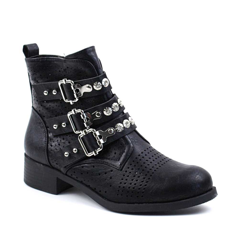 Ghete de dama perforate cu barete decorative 7168-PA-BLACK