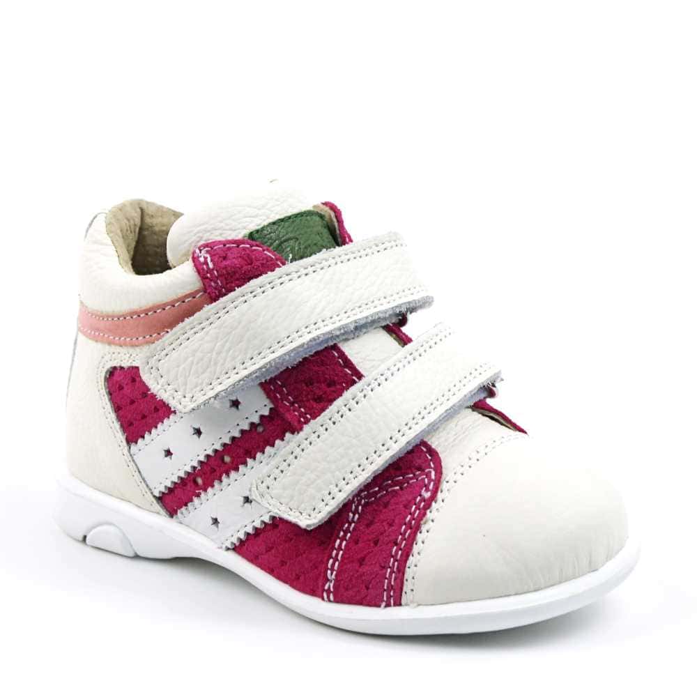 Ghete sport pentru copii , din piele naturala 3237-ALB/FUCSIA
