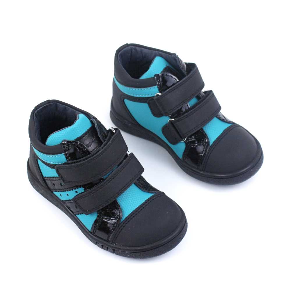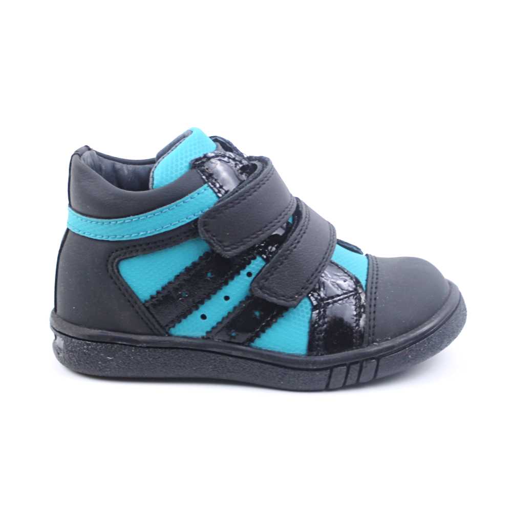 Ghete sport pentru copii , din piele naturala 3237-NEGRU/TURCOAZ/30