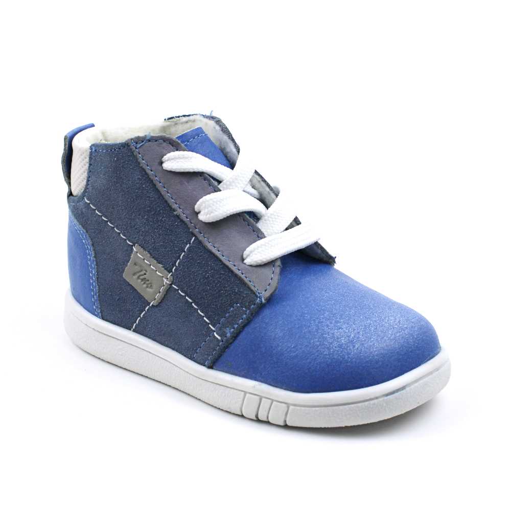 Ghete usoare de copii, captusite, din piele naturala PRIMII PASI 1391-BLEU/ALB
