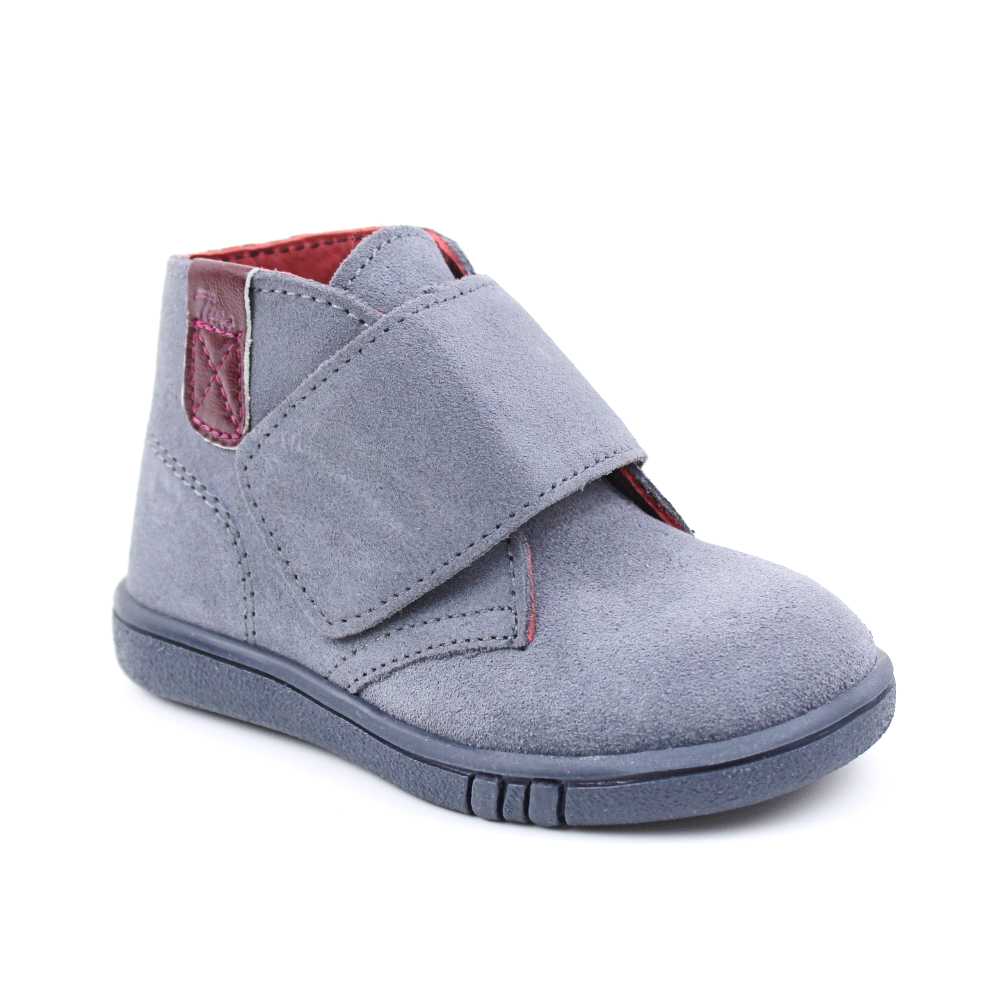 Ghete usoare , pentru copii , din piele naturala intoarsa , cu talpa groasa 3200-GRI/BORDO