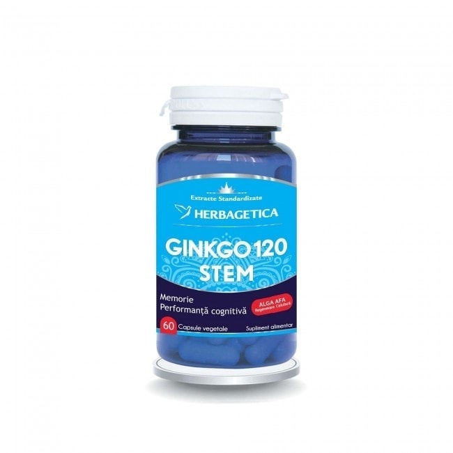 Ginkgo 120 STEM este singura formulă din România care combină cea mai puternică concentraţie de Ginkgo Biloba, extract standardizat 50:1. Această combinaţie inovativă este eficientă pentru regenerarea sistemului nervos, iar efectele sale sunt susţinute de Extractul de Ganoderma, cele 3 tipuri de Ginseng (Chinezesc, Siberian şi Indian) şi cele două alge verzi-albastre Chlorella şi Spirulină.