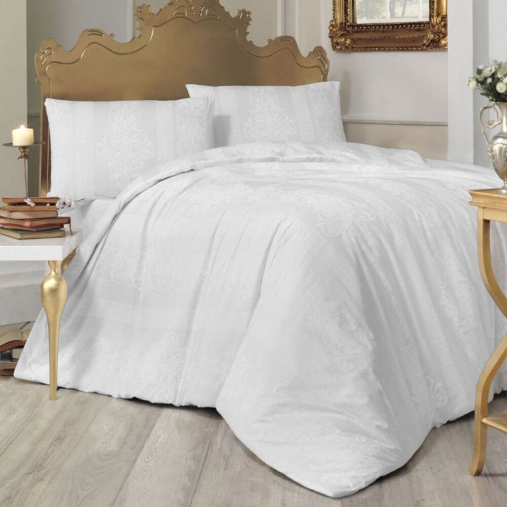 Setul de lenjerie de pat Nobby White este potrivit pentru paturile matrimoniale (2 persoane) si este format din patru piese: