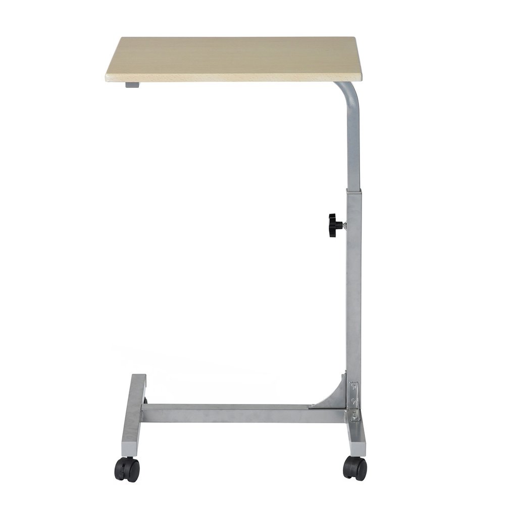 Masa pentru laptop multifunctionala DacEnergy©, cadru metalic gri, blat din MDF acoperit cu PVC crem, 4 roti, reglabila pe inaltime, 48 x 37 x 79 cm