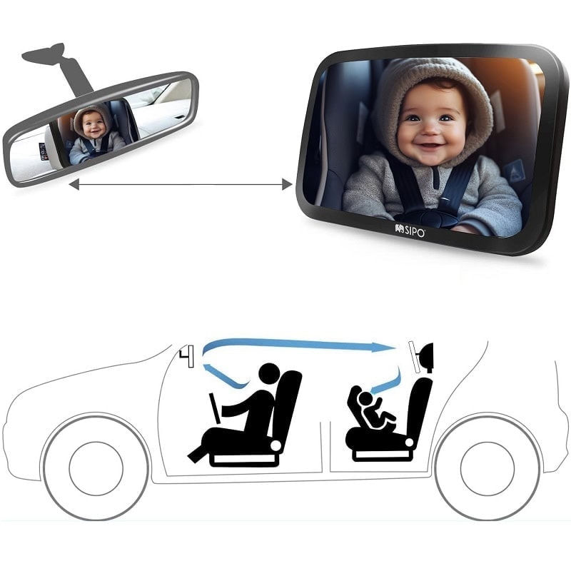 Oglinda auto supraveghere bebe, Sipo, Fixare tetiera, Suport anti-alunecare, 360 grade, 30x20 cm, Negru
