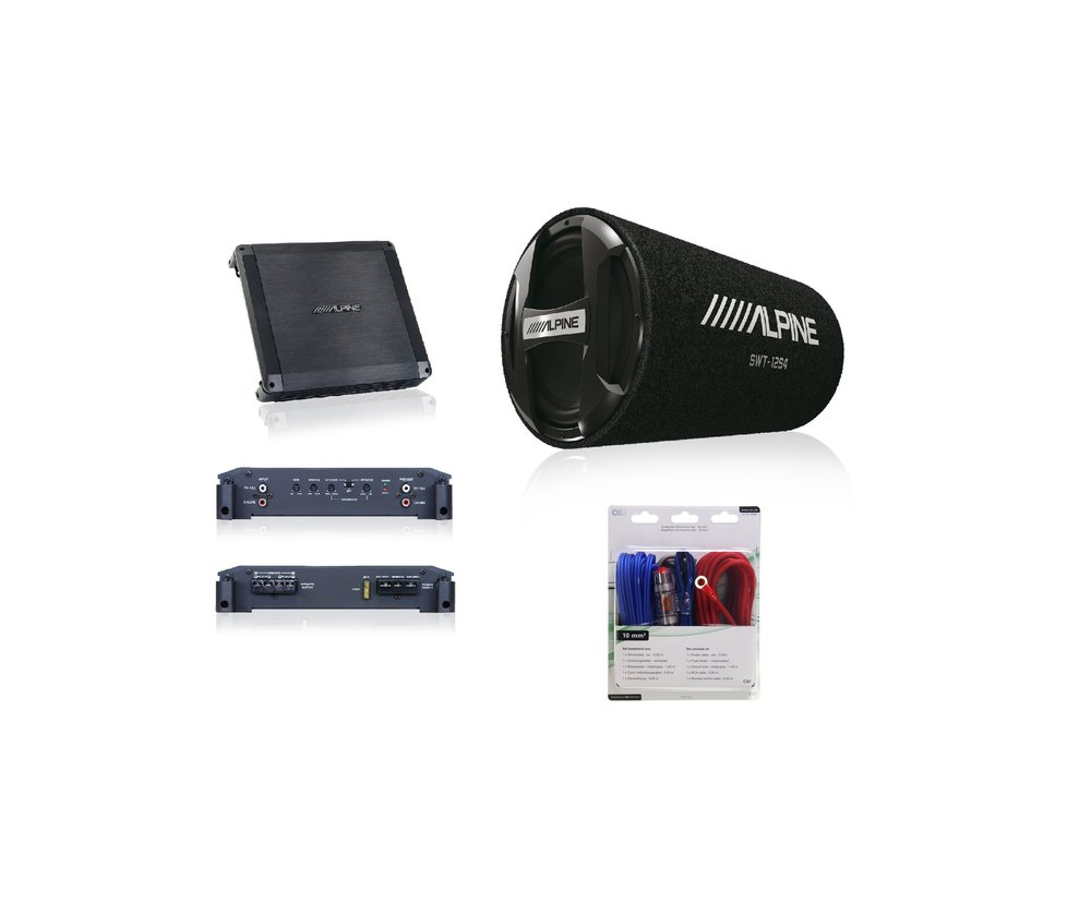 Pachet Alpine SWT-12S4 Subwoofer tub 30cm (12″) + BBX-T600 Amplificator auto 2 canale + 350940 kit cabluri Aiv 10mm²