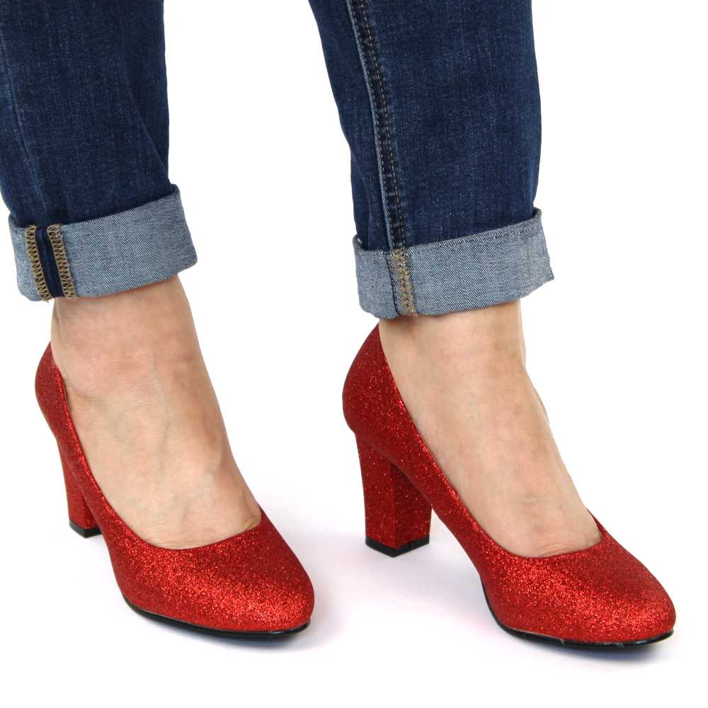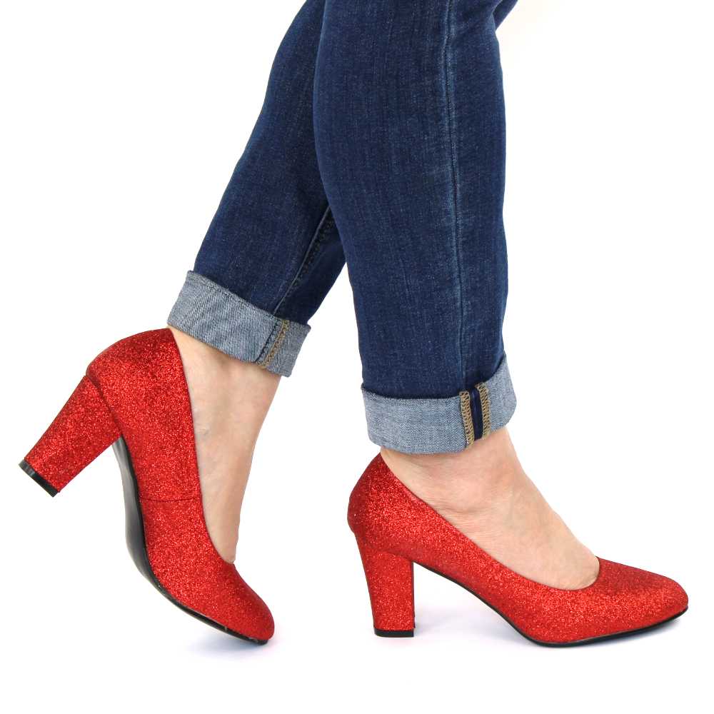 • Eleganță strălucitoare: Cu un finisaj în roșu vibrant și detalii cu glitter, acești pantofi sunt ideali pentru orice ocazie specială.