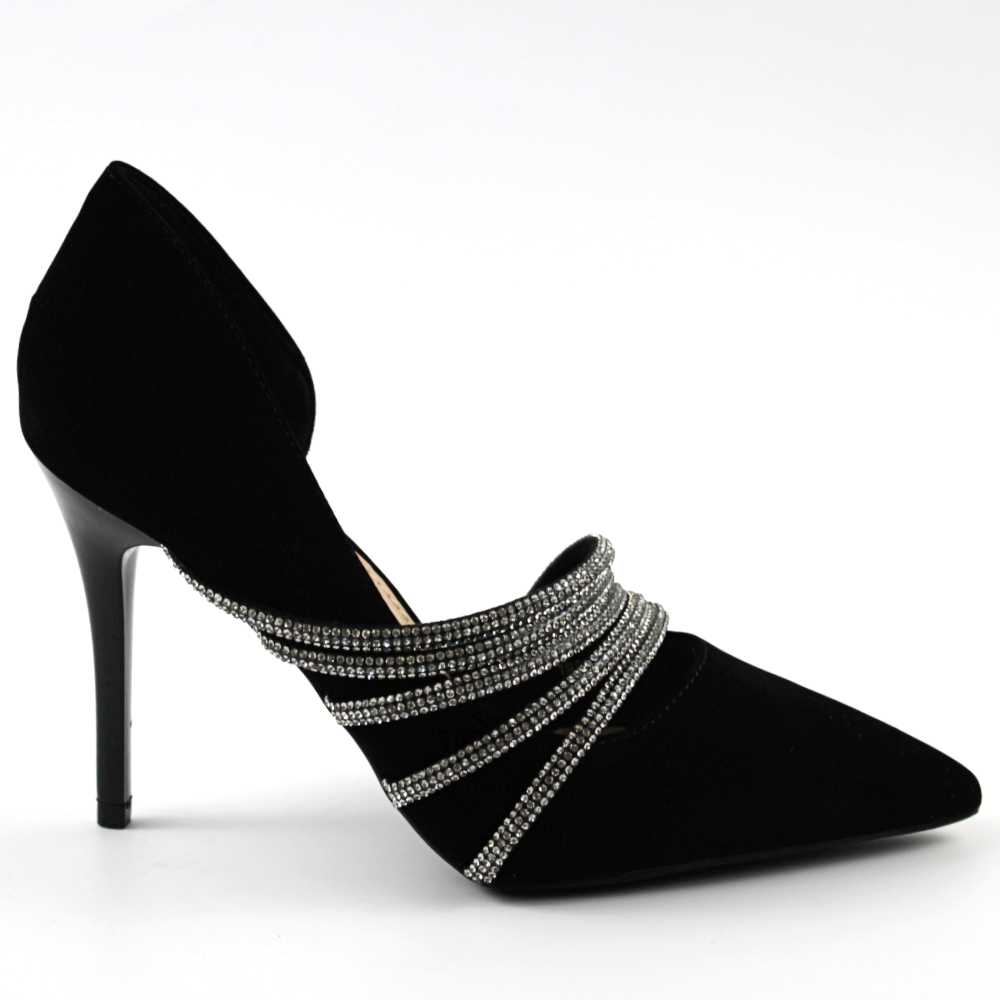 Pantofi eleganti de dama , decorati cu benzi stralucitoare 1957-28-BLACK