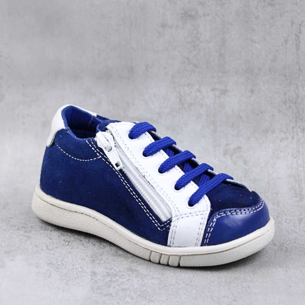Pantofi sport , pentru copii , din piele naturala , cu fermoar lateral 1864-ALBASTRU/ALB