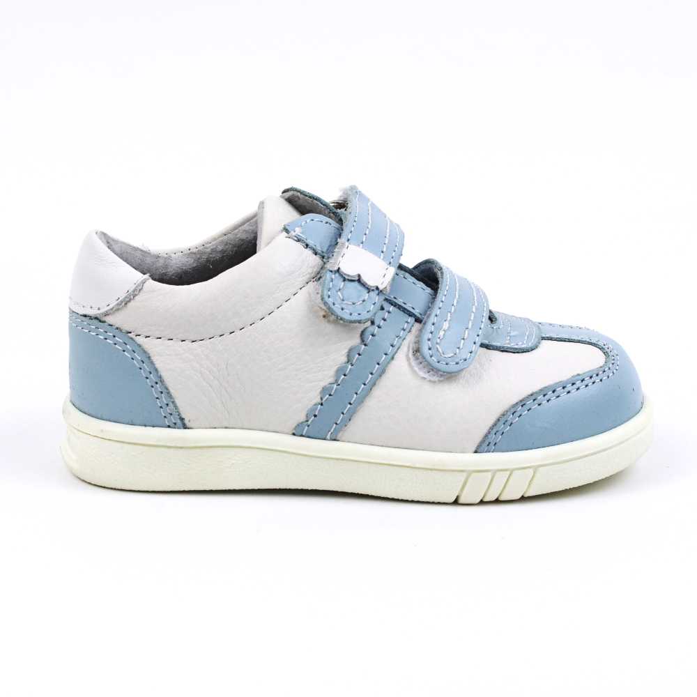 TABEL DE MASURI : M 20 : 13.5 cm M 22 : 14.5 cmM 21 : 14 cm M 23 : 15 cm Pantofi sport , pentru copii , din piele naturala , PRIMII PASI 1839-BLEU/ALB/PPConfectionati din piele naturala , interior si exteriorInchidere cu barete cu ariciPRODUS IN ROMANIA !