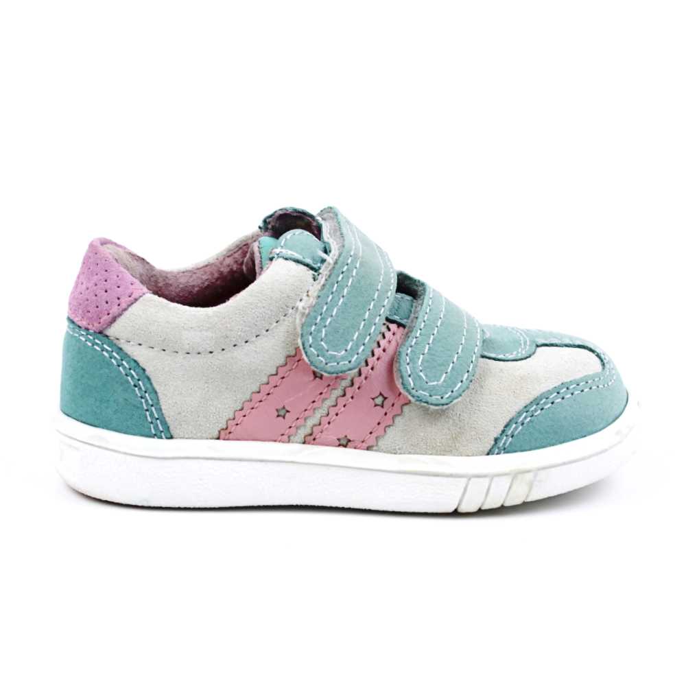 TABEL DE MASURI : M 20 : 13.5 cm M 22 : 14.5 cmM 21 : 14 cm M 23 : 15 cm Pantofi sport , pentru copii , din piele naturala , PRIMII PASI 1839-TURCOAZ/ALB/23Confectionati din piele naturala , interior si exteriorInchidere cu barete cu ariciPRODUS IN ROMANIA !