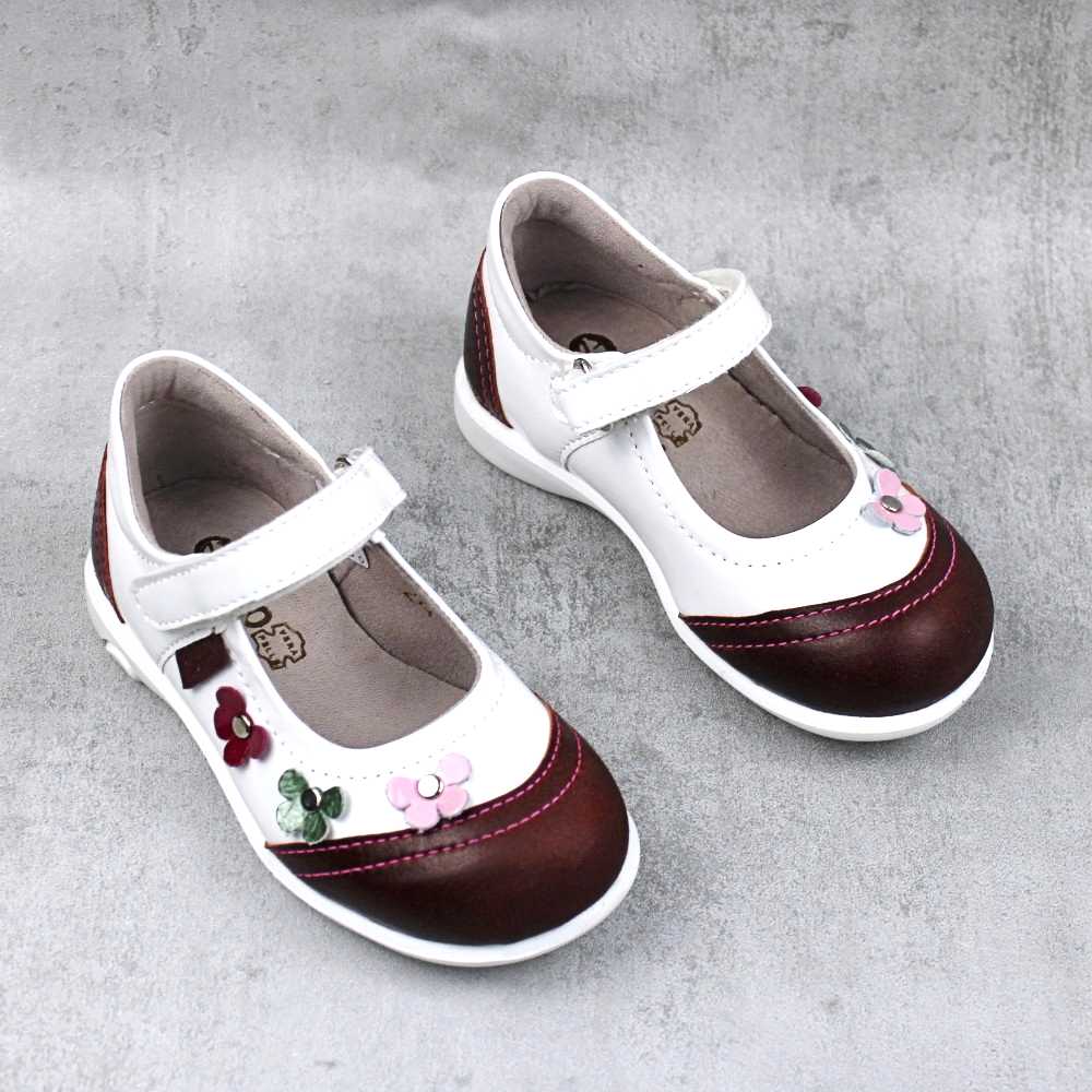 Pantofi usori , de copii , decorati cu flori , din piele naturala 1793-ALB/BORDO2