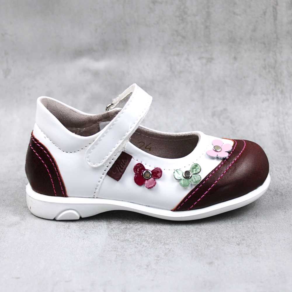 Pantofi usori , de copii , decorati cu flori , din piele naturala 1793-ALB/BORDO2